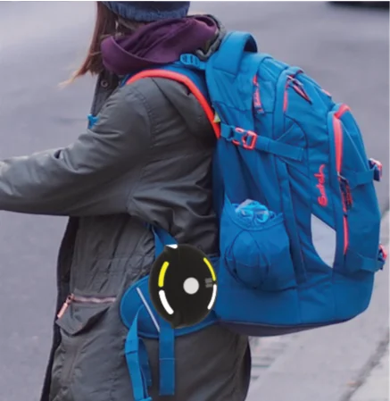 Man kann den SIDEWATCH beispielsweise am Rucksack, einer Umhängetasche oder an der Schultasche befestigen.