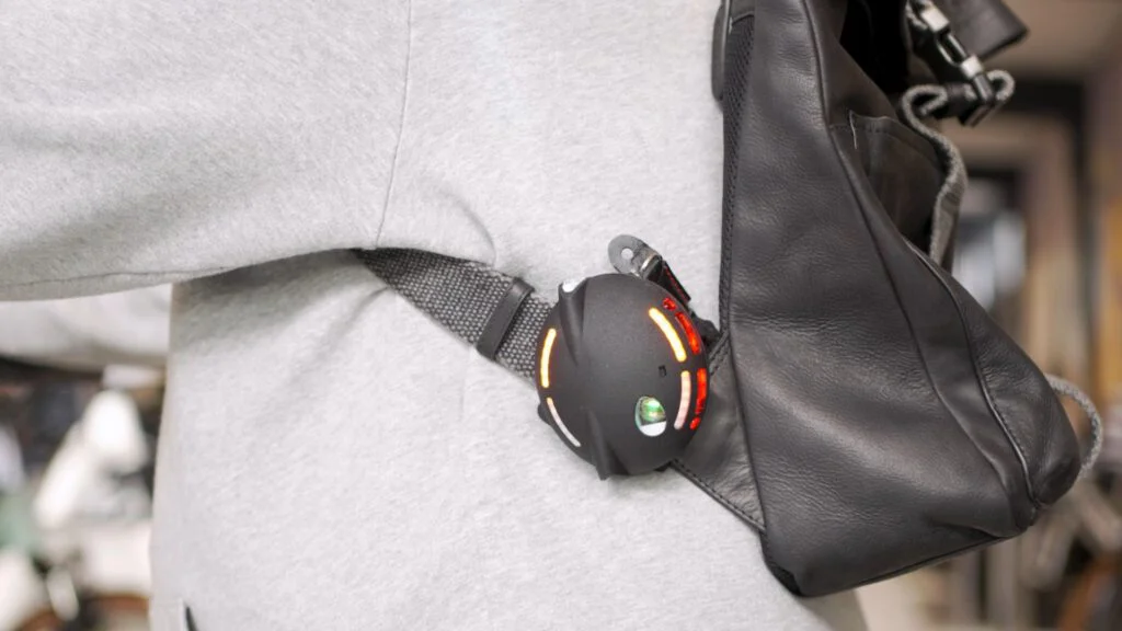 SIDEWATCH kann man am Körper tragen oder beliebig am Fahrrad befestigen