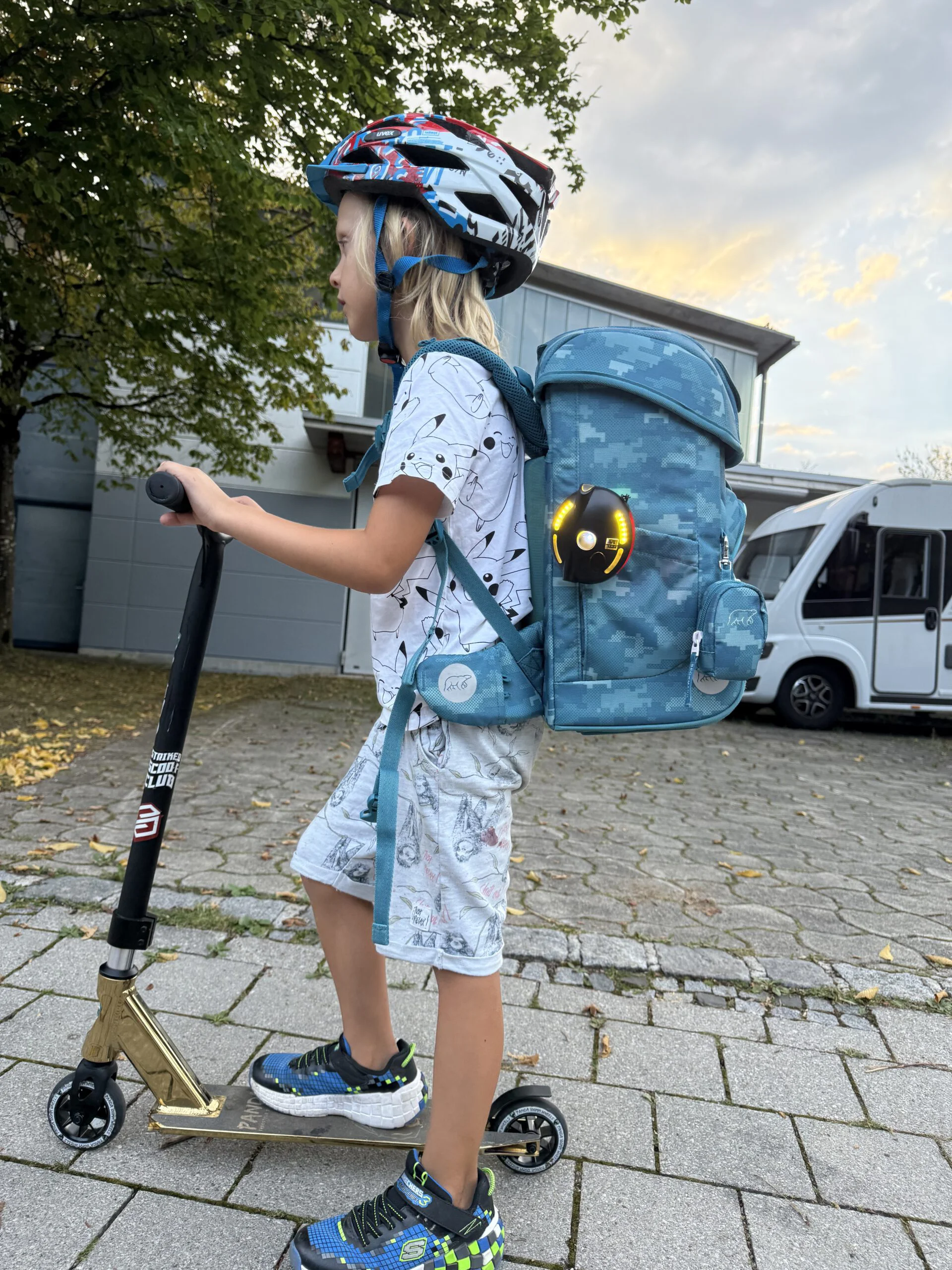 Mit den gelben Warnleuchten sind Kinder, ältere Menschen, Wanderer und Spaziergänger seitlich schon von weitem sichtbar.
