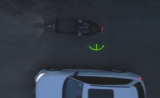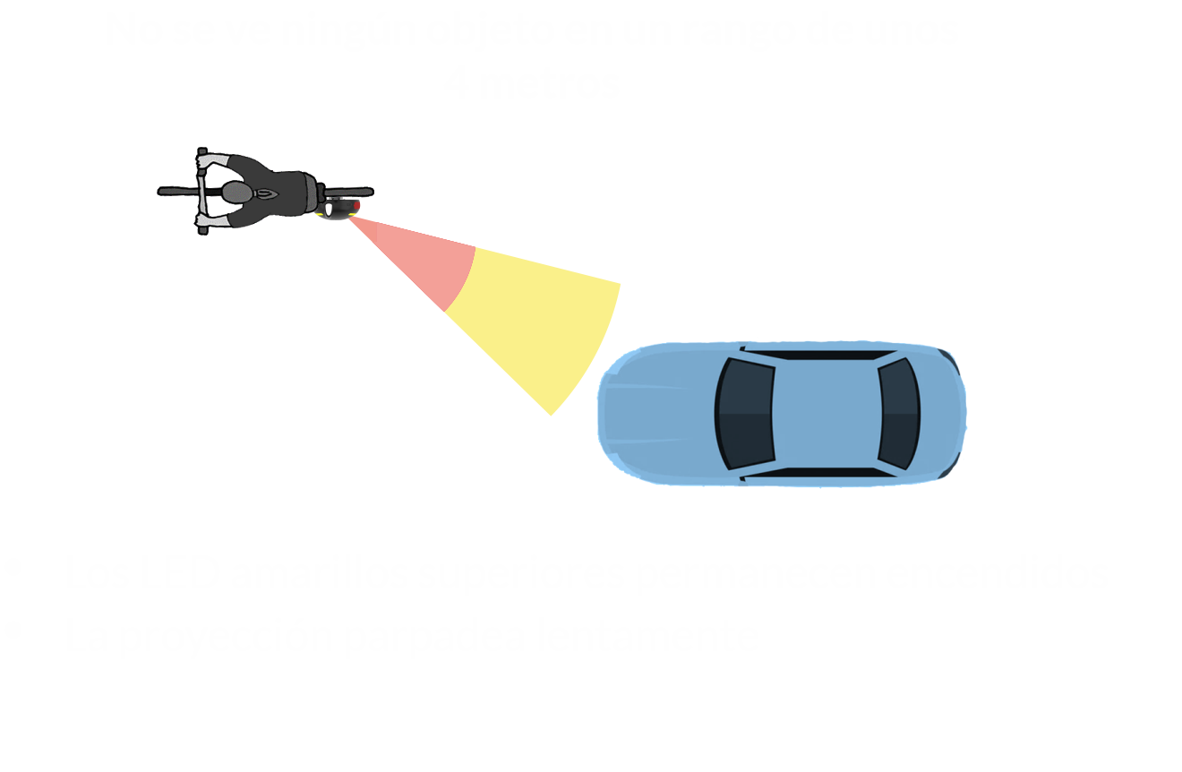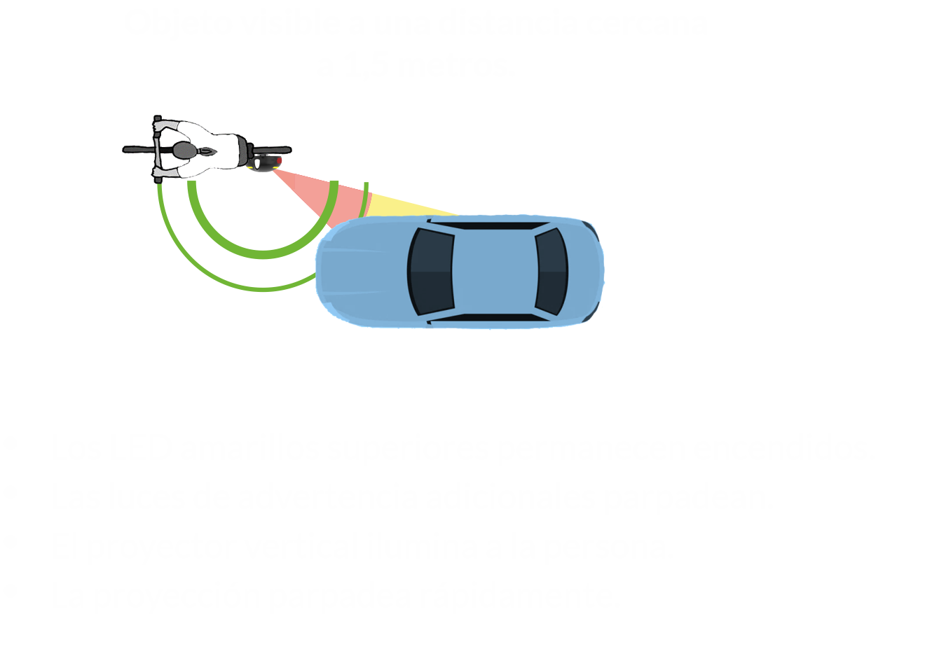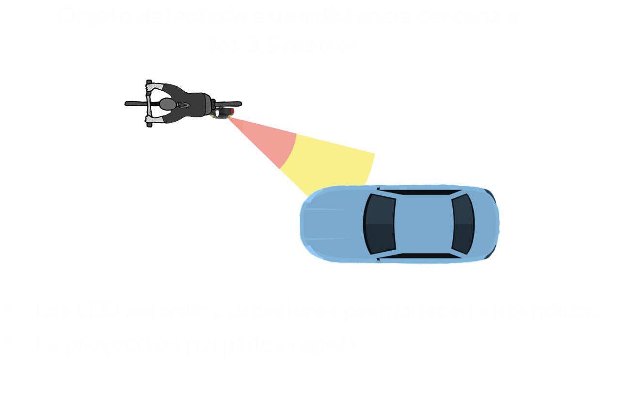 Un sensor LIDAR observa constantemente una zona situada a una distancia de 4 m detrás y a los lados de la bicicleta o de la persona que la transporta.